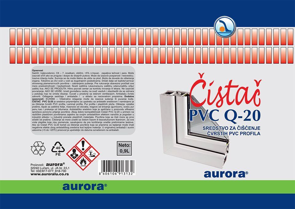 Čistač PVC Q-20 je sredstvo pripremljeno za upotrebu sa antistatik efektom. Namenjeno je za čišćenje čvrstih PVC profila, laminat profila, pur profila i plastičnih ploča.