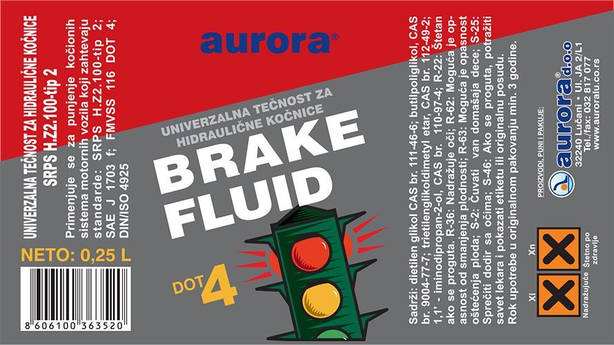 Kočiona tečnost DOT 4, sintetički fluid za kočnice visokih zahteva.