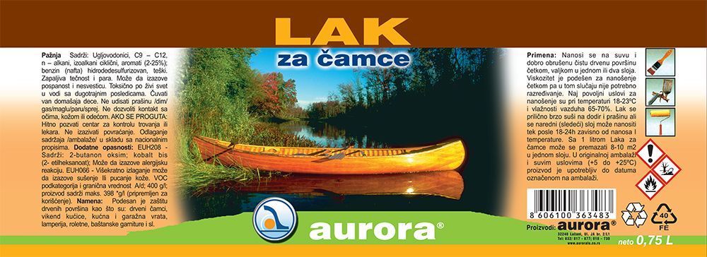 Lak za čamce je bezbojni lak za drvo visokog sjaja i velike otpornosti na vlagu i habanje sa svojstvima dobrog upijanja i razlivanja. Podesan je za zaštitu drvenih površina kao što su: drveni čamci, vikend kućice, kućna i garažna vrata, lamperija, roletne, baštanske garniture i sl.