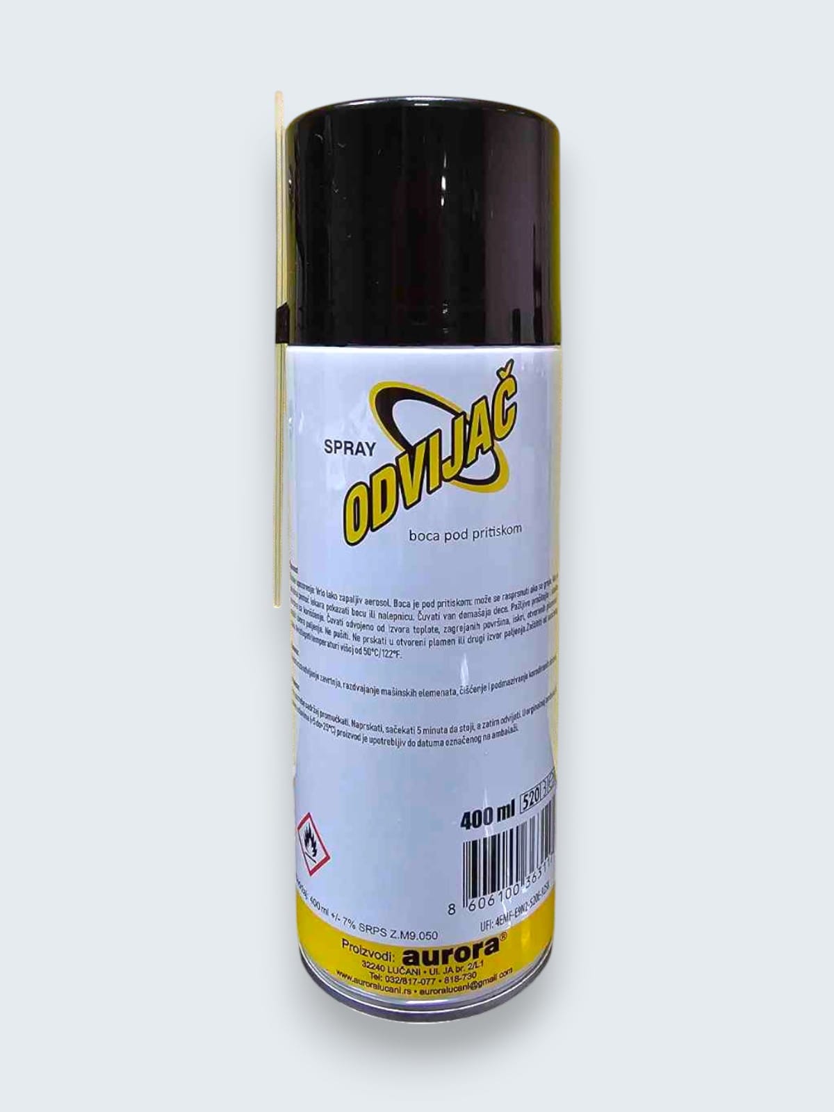 Odvijač sprej je sredstvo za odvijanje zavrtnjeva i razdvajanje teško rasklopivih zarđalih mašinskih elemenata, čišćenje i podmazivanje korodiranih delova. Sadrži postojano ulje sa dobrim osobinama podmazivanja i dugotrajnim zadržavanjem na površini metala.